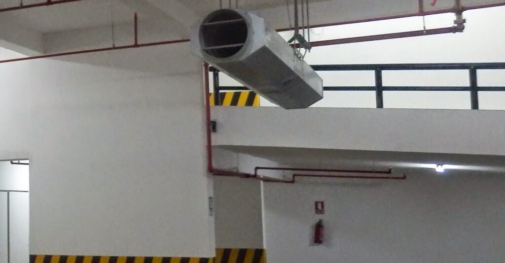 Es un sistema avanzado de protección contra incendios para edificios de gran altura. En caso de emergencia, un ventilador de escaleras presurizadas inyecta aire limpio del exterior, creando una presión positiva que impide la entrada de humo. Esto garantiza una evacuación segura y permite a los bomberos actuar con mayor eficacia en la extinción del fuego.